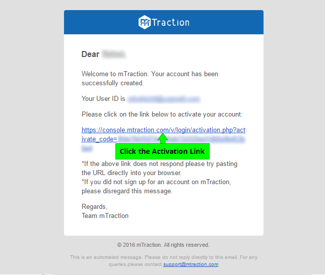 4. Once approved you will receive an email containing an activation link. Press the activation link and you're all set to log into mTraction!